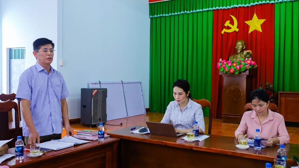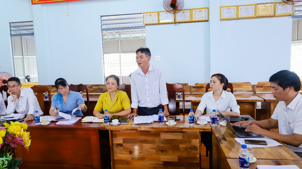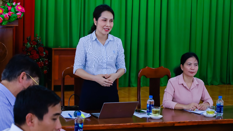 Provincial Party Member and Secretary of the Ward Party Committee, Ms. Huynh Thi Thuy Trang, speaks at the working session.