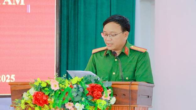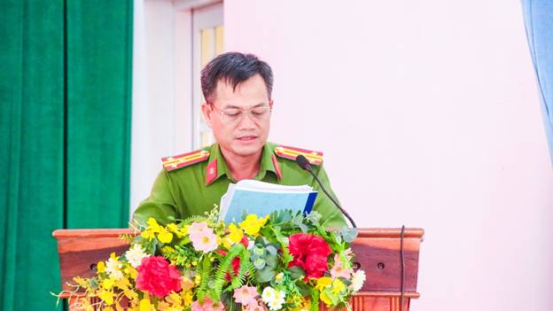 Thượng tá Phạm Văn Thép – Trưởng Công an phường Phước Bình thông báo Kết luận của Giám đốc Công an tỉnh tại hội nghị sơ kết 6 tháng đầu năm 2025 của Công an tỉnh Đồng Nai.