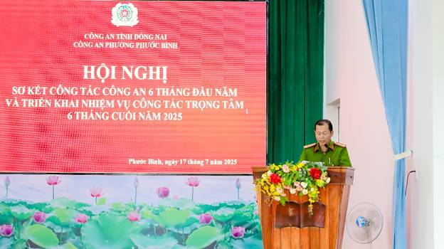 Chiều ngày 17-7, Công an phường Phước Bình đã tổ chức hội nghị sơ kết công tác công an 6 tháng đầu năm và triển khai nhiệm vụ 6 tháng cuối năm 2025. Dự hội nghị có Đại tá Lâm Văn Long – Phó Giám đốc Công an tỉnh Đồng Nai; đồng chí Huỳnh Thị Thùy Trang – Tỉnh ủy viên, Bí thư Đảng ủy phường; đồng chí Nguyễn Văn Dũng – Phó Bí thư Đảng ủy, Chủ tịch UBND phường. Cùng dự hội nghị còn có đại diện lãnh đạo các phòng nghiệp vụ Công an tỉnh; lãnh đạo Ủy Ban MTTQ Việt Nam, Ban CHQS phường; Ban Chấp hành, Ban Chỉ huy và toàn thể cán bộ chiến sĩ Công an phường Phước Bình.