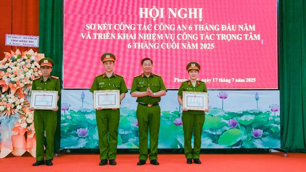 Đại tá Lâm Văn Long – Phó Giám đốc Công an tỉnh Đồng Nai tuyên dương, khen thưởng các cá nhân có thành tích trong 6 tháng đầu năm 2025 tại hội nghị