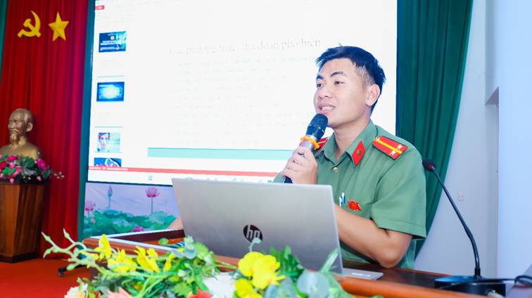 Báo cáo viên Công an tỉnh Đồng Nai tuyên truyền các nội dung tại lễ phát động