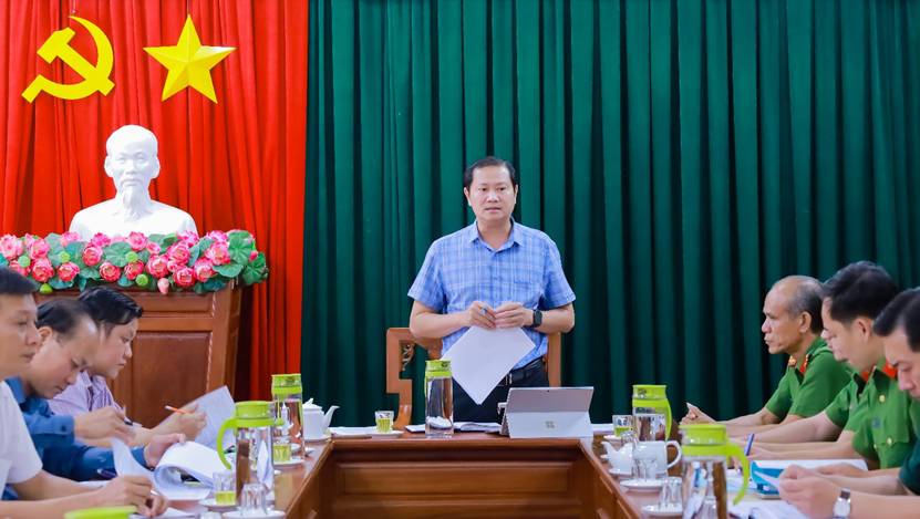 Trung tá Nguyễn Trọng Đức – Đội trưởng Đội PCCC và CNCH khu vực Phước Long, Phó Trưởng đoàn công tác Phòng cảnh sát PCCC&CNCH Công an tỉnh phát biểu tại buổi làm việc