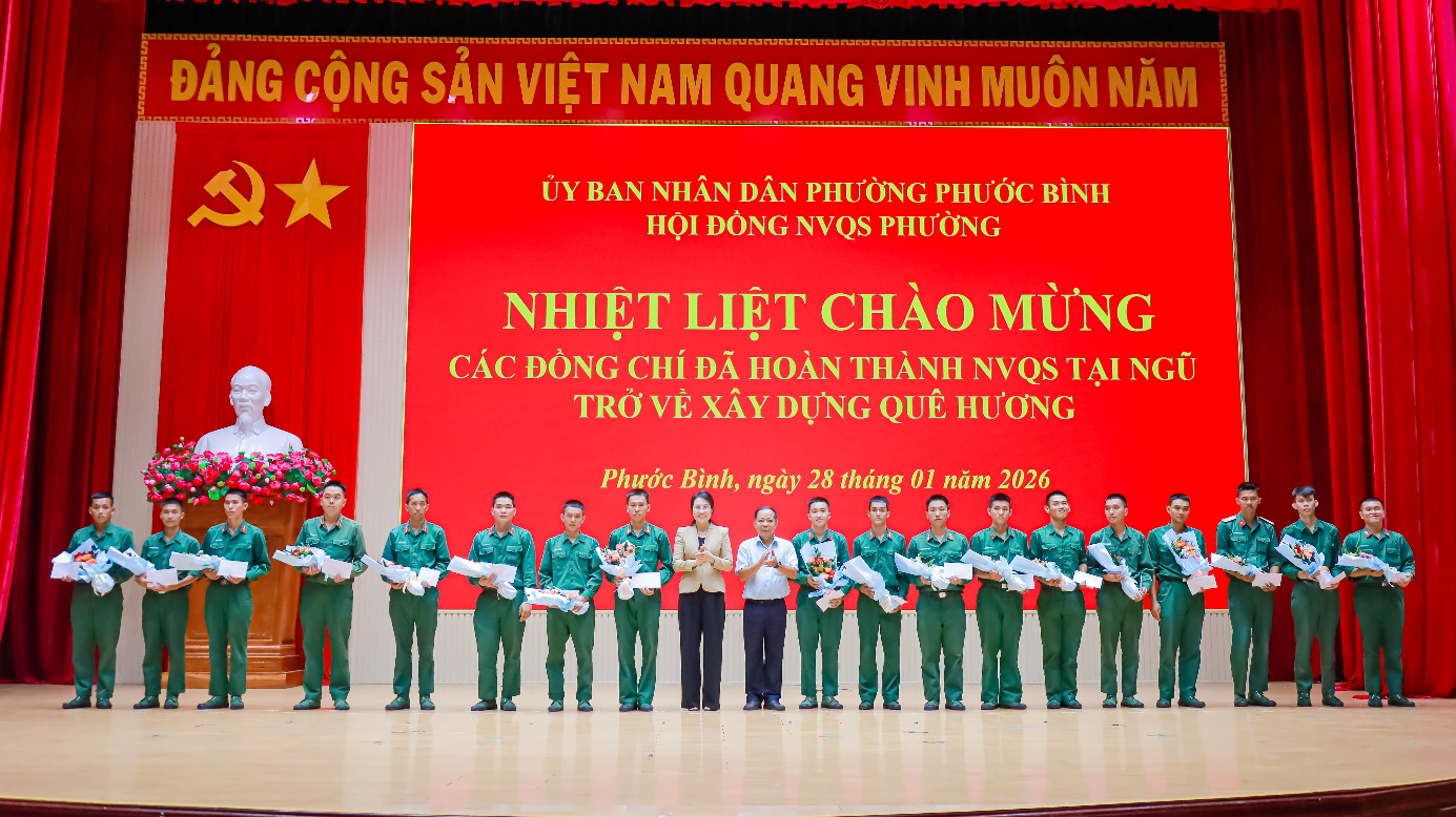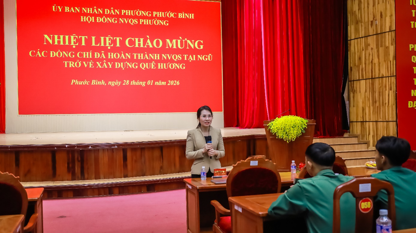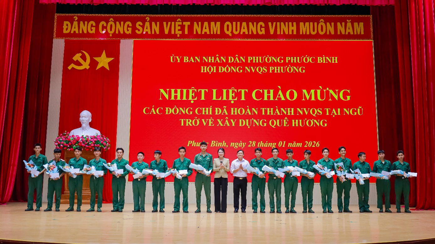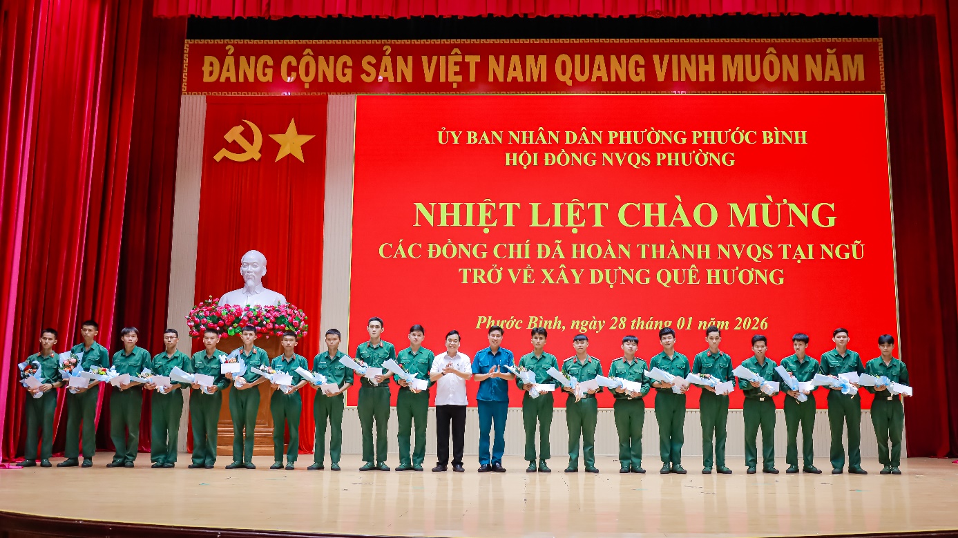 Chiều ngày 28/01, UBND xã phường Phước Bình đã tổ chức lễ đón nhận quân nhân hoàn thành nghĩa vụ quân sự (NVQS) tại ngũ trở về xây dựng quê hương. Dự lễ có đồng chí Huỳnh Thị Thùy Trang – Tỉnh ủy viên, Bí thư Đảng ủy phường; Nguyễn Văn Dũng – Phó Bí thư Đảng ủy, Chủ tịch UBND, Chủ tịch Hội đồng NVQS phường; Trung tá Nguyễn Quang Trung – Chỉ huy trưởng Quân sự phường, Phó Chủ tịch Thường trực Hội đồng NVQS phường.