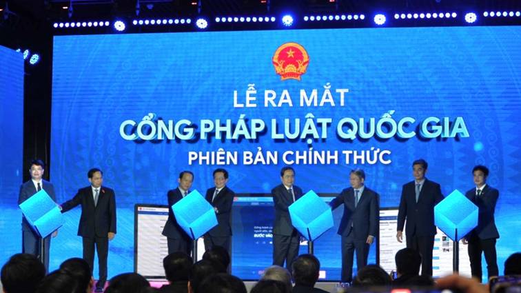 Tại buổi lễ, Chủ tịch Quốc hội Trần Thanh Mẫn, Phó Thủ tướng Chính phủ Hồ Quốc Dũng, lãnh đạo các ban, bộ, ngành Trung ương đã thực hiện nghi thức bấm nút ra mắt phiên bản chính thức Cổng Pháp luật Việt Nam tại địa chỉ phapluat.gov.vn - nền tảng số dùng chung do Bộ Tư pháp xây dựng, vận hành với sự đồng hành của Tập đoàn FPT.