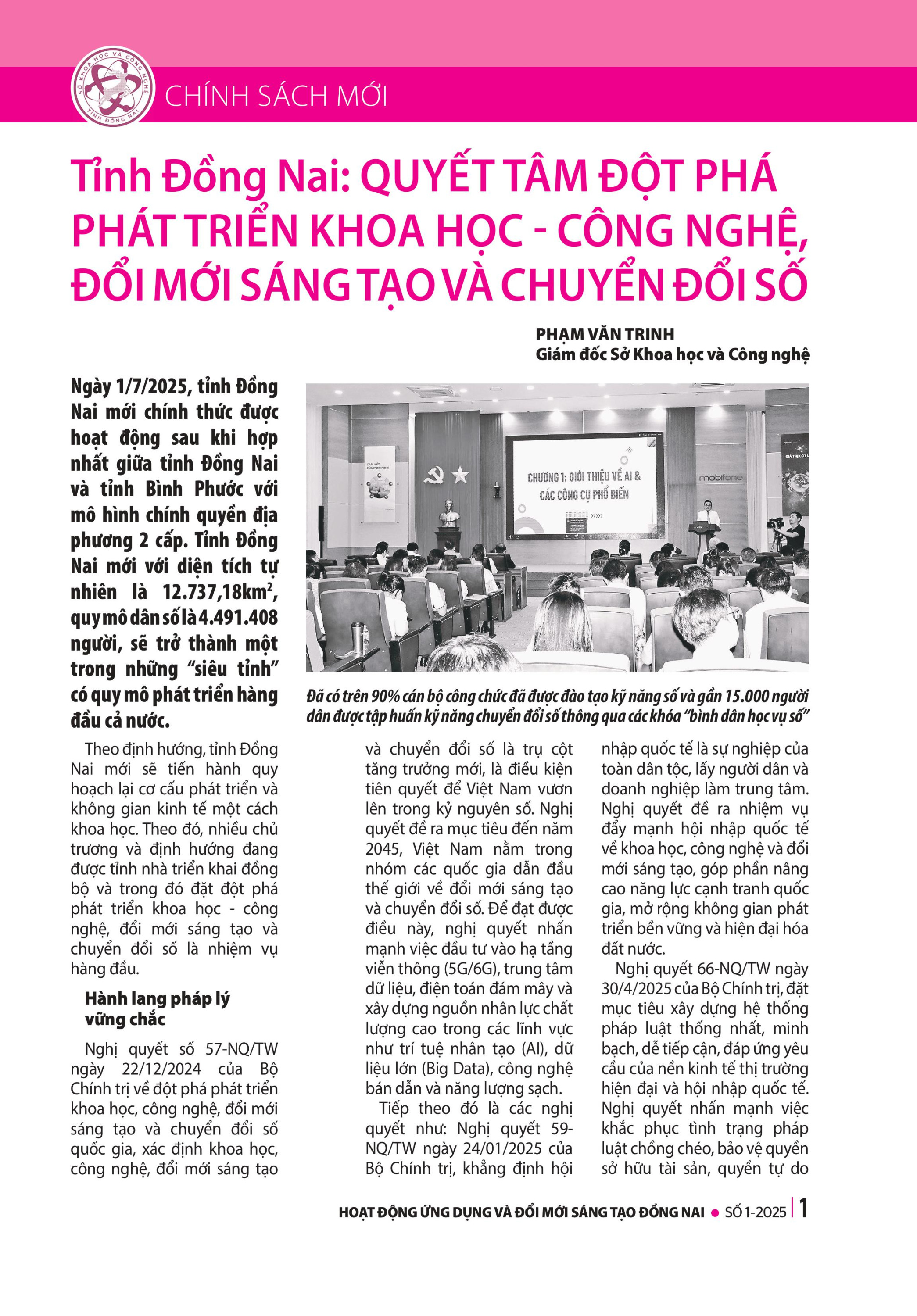 Bản tin Hoạt động ứng dụng và đổi mới sáng tạo số 1/2025