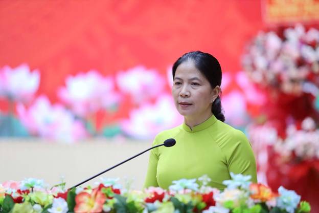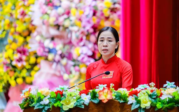Đồng chí Bùi Thị Hằng – Phó Bí thư Đảng ủy UBND phường phát biểu tại Đại hội