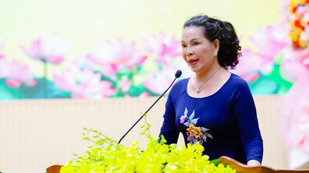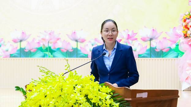 Tỉnh ủy viên, Bí thư Đảng ủy phường Huỳnh Thị Thùy Trang phát biểu tại chương trình
