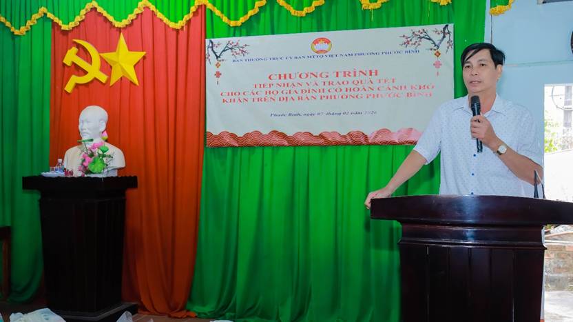 Phát biểu tại chương trình, ông Hà Tấn Tân, Chủ tịch UBMTTQVN phường nhấn mạnh, đây là hoạt động có ý nghĩa thiết thực nhằm lan tỏa tinh thần“Tương thân tương ái, lá lành đùm lá rách” Đảng, Chính quyền cùng sự chung tay của các mạnh thường quân để chăm lo đời sống cho các hộ gia đình có hoàn cảnh khó khăn trên địa bàn phường được đón mùa xuân mới, Tết Bính Ngọ 2026 trọn vẹn, ấm áp. Thông qua chương trình, thay mặt lãnh đạo phường, ông Hà Tấn Tân cũng mong muốn tiếp tục nhận được sự chung tay, góp sức của Câu lạc bộ Hương Từ Tâm, các mạnh thường quân, các tổ chức, công ty, doanh nghiệp trong và ngoài phường cùng địa phương thực hiện tốt công tác an sinh xã hội, giúp người nghèo, người có hoàn cảnh khó khăn có thêm động lực vươn lên trong cuộc sống.