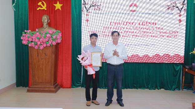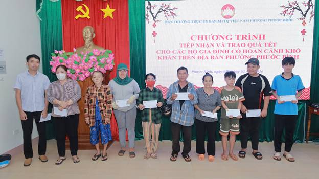 Chiều ngày 7/2, Ủy ban MTTQ Việt Nam phường Phước Bình phối hợp với Công ty TNHH Minh Loan tổ chức trao quà Tết cho hộ có hoàn cảnh khó khăn trên địa bàn phường. Ông Hà Tấn Tân – UVBTV Đảng ủy, Chủ tịch UBND phường dự và trao Thư cảm ơn.