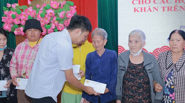 Ban tổ chức trao quà Tết cho các hộ có hoàn cảnh khó khăn, mỗi phần trị giá 500.000 đồng