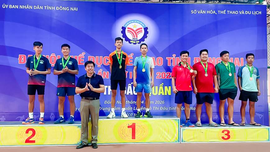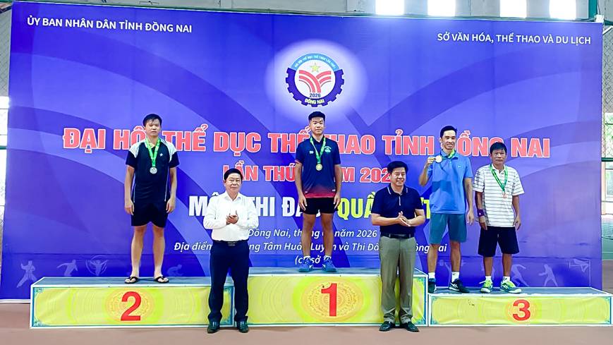 <div style="text-align: justify;"><span style="font-family:Arial,Helvetica,sans-serif;"><span style="font-size:14pt"><span style="line-height:150%"><span lang="VI" style="font-size:15.0pt"><span style="line-height:150%">Vừa qua, từ ngày 10</span></span><span style="font-size:15.0pt"><span style="line-height:150%">/4</span></span> <span style="font-size:15.0pt"><span style="line-height:150%">đến</span></span><span lang="VI" style="font-size:15.0pt"><span style="line-height:150%"> 12/4</span></span><span style="font-size:15.0pt"><span style="line-height:150%">/2026</span></span><span lang="VI" style="font-size:15.0pt"><span style="line-height:150%">, </span></span><span style="font-size:15.0pt"><span style="line-height:150%">tại cụm sân quần vợt thuộc Trung tâm Huấn luyện và Thi đấu Thể thao tỉnh (cơ sở 2, phường Bình Phước), Sở Văn hóa, Thể thao và Du lịch Đồng Nai</span></span><span lang="VI" style="font-size:15.0pt"><span style="line-height:150%"> đã</span></span><span style="font-size:15.0pt"><span style="line-height:150%"> tổ chức thi đấu môn quần vợt trong khuôn khổ Đại hội Thể dục thể thao tỉnh Đồng Nai lần I năm 2026. Quần vợt là môn chính thức đầu tiên nằm trong số các môn thi đấu tại Đại hội Thể dục thể thao tỉnh Đồng Nai lần I được tổ chức.</span></span></span></span><br />