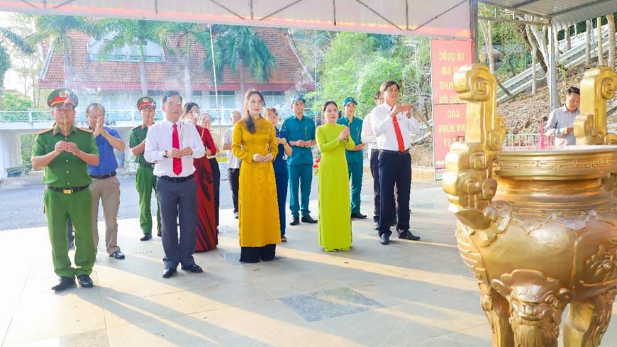 Tỉnh ủy viên, Bí thư Đảng ủy phường Phước Bình Huỳnh Thị Thùy Trang cùng các đồng chí Thường trực, Ban Thường vụ Đảng ủy phường dâng hương tại Đền thờ các anh hùng liệt sĩ và đồng bào tử nạn Núi Bà Rá