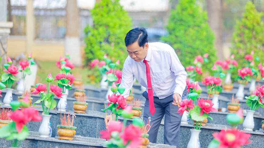 Phó Bí thư Đảng ủy, Chủ tịch UBND phường Phước Bình Nguyễn Văn Dũng dâng hương phần mộ các anh hùng liệt sĩ