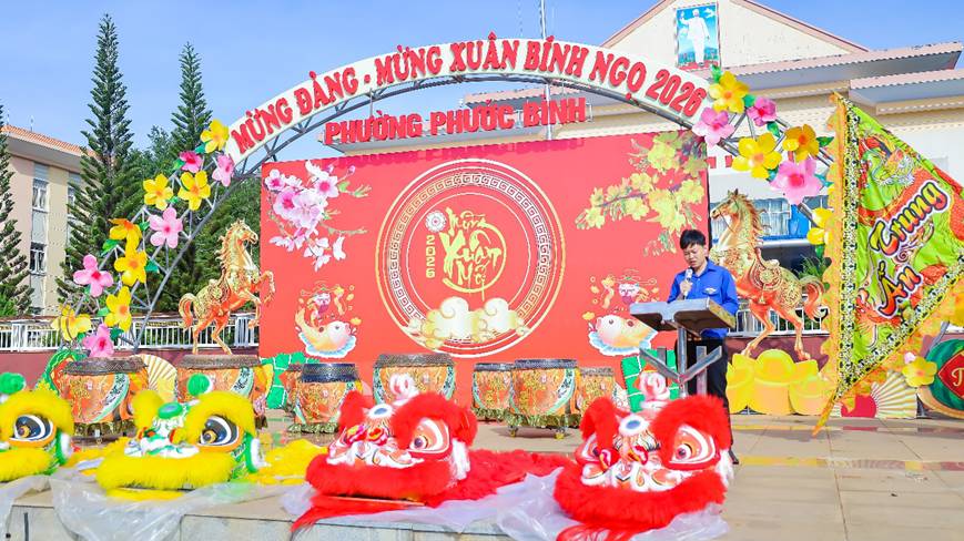Hòa trong không khí an lành những ngày đầu năm mới Bính Ngọ 2026, sáng ngày 20/2 (mùng 4 Tết), phường Phước Bình đã tổ chức Hội khai Xuân 2026 với nhiều hoạt động văn hóa và các trò chơi dân gian sôi động. Dự khai hội có Ủy viên Ban Thường vụ Đảng ủy, Phó Chủ tịch UBND phường Bùi Thị Hằng; lãnh đạo Phòng Văn hóa – Xã hội, Trung tâm DVTH, Đoàn Thanh niên phường; đoàn Lân Sư Rồng Chí Thiện Đường và đoàn Lân Sư Rồng Trung Ấn.