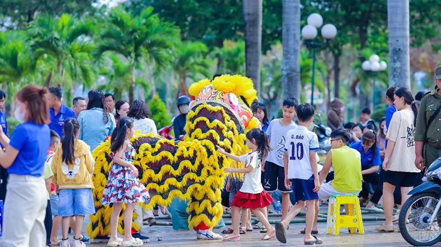Các bạn nhỏ được giao lưu với đoàn Lân