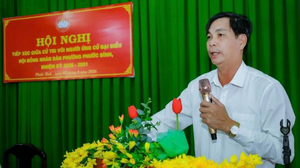 Tiếp thu ý kiến của cử tri, bên cạnh chia sẻ các thông tin về tình hình kinh tế - xã hội, an ninh quốc phòng, chuyển đổi số của địa phương thời gian qua, đại diện cho những người ứng cử tại đơn vị bầu cử số 3, ông Nguyễn Văn Dũng, Phó Bí thư Đảng ủy, Chủ tịch UBND phường Phước Bình khẳng định sẽ tiếp tục phát huy vai trò, trách nhiệm của mình để kịp thời tiếp nhận, phản ánh và chuyền tải kịp thời những tâm tư, nguyện vọng chính đáng của cử tri đến HĐND các cấp... Đồng chí cũng đề nghị cử tri các khu phố quan tâm và phát huy quyền làm chủ của mình, tích cực tuyên truyền, vận động người dân tham gia bỏ phiếu đầy đủ, đúng thời gian quy định vào ngày 15/3/2026, sáng suốt lựa chọn những đại biểu tiêu biểu, đủ đức, đủ tài đại diện cho ý chí, nguyện vọng của Nhân dân...
