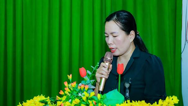 Bà Lê Huyền Trâm, Chuyên viên Ủy ban MTTQ Việt Nam phường Phước Bình trình bày chương trình hành động