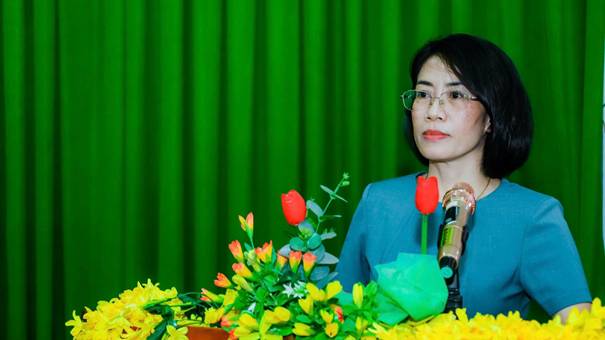 Bà Trịnh Thị Hường - Ủy viên Ban Chấp hành Đảng ủy, Phó Chủ tịch UBMTTQVN, Chủ tịch Hội LHPN phường Phước Bình trình bày chương trình hành động
