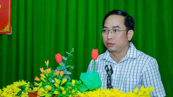 Ông Hà Tấn Tân - Ủy viên Ban Thường vụ Đảng ủy, Chủ tịch Ủy ban MTTQ Việt Nam phường Phước Bình phát biểu bế mạc hội nghị