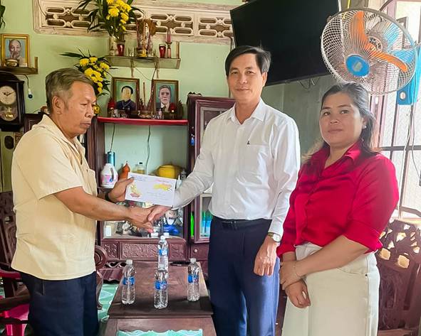 Đồng chí Hà Tấn Tân, UVBTV Đảng ủy, Chủ tịch Ủy ban MTTQ Việt nam phường thăm hỏi sức khỏe và tặng quà gia đình ông Nguyễn Tấn Quyến (tù đày) khu phố 8