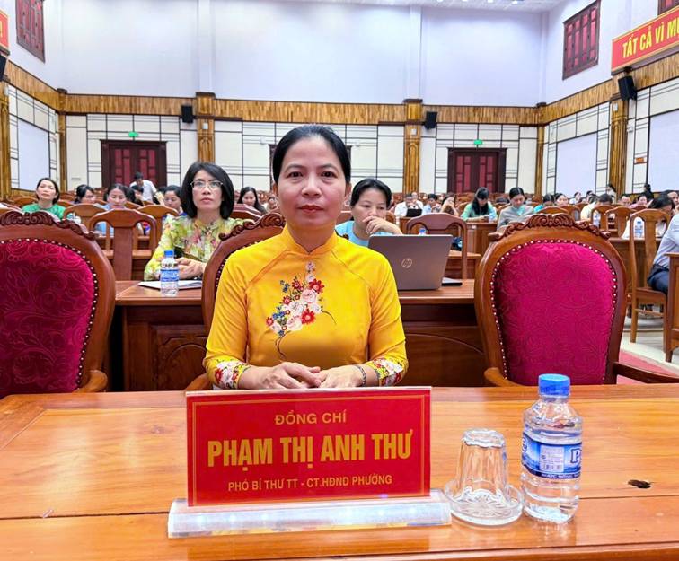 Đồng chí Phạm Thị Anh Thư – Phó Bí thư Thường trực Đảng ủy, Chủ tịch HĐND phường Phước Bình tham dự chương trình sinh hoạt chi bộ tại Trung tâm Hội nghị phường.
