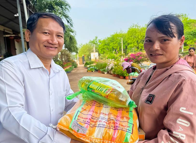 Công ty TNHH Cát Tường Như Ý trao quà cho các hộ đồng bào DTTS khu phố Long Giang.