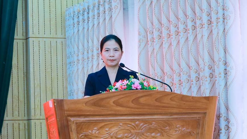 Đồng chí Phạm Thị Anh Thư – Phó Bí thư Thường trực Đảng ủy phường, Bí thư Đảng ủy Các cơ quan Đảng, Chủ tịch HĐND phường Phước Bình phát biểu tại hội nghị. Ảnh: Ngọc Cương