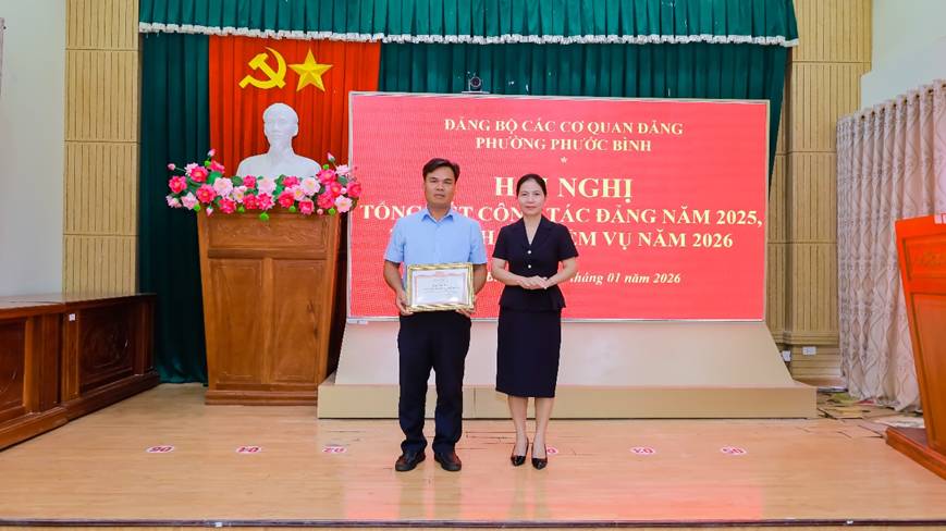 Chiều ngày 22/1, Đảng bộ Các cơ quan Đảng phường Phước Bình tổ chức tổng kết công tác Đảng năm 2025, triển khai phương hướng, nhiệm vụ năm 2026. Các đồng chí: Phạm Thị Anh Thư – Phó Bí thư Thường trực Đảng ủy phường, Chủ tịch HĐND phường, Bí thư Đảng ủy Các cơ quan Đảng; Võ Đông Quang - Ủy viên Ban thường vụ Đảng ủy phường, Trưởng Ban Xây dựng Đảng, Phó Bí thư Đảng ủy Các cơ quan Đảng; Ban Thường vụ, Ban Chấp hành Đảng bộ cùng toàn thể đảng viên thuộc Đảng bộ Các cơ quan Đảng tham dự hội nghị.