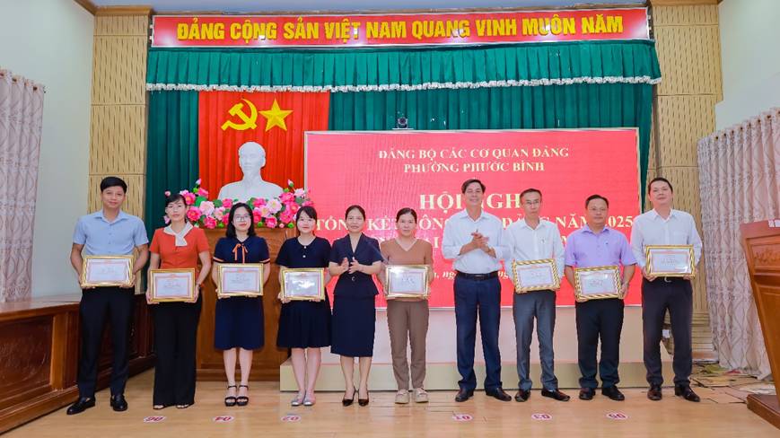 Dịp này, 01 chi bộ và 9 đảng viên có thành tích tiêu biểu trong công tác Đảng năm 2025 đã được Đảng ủy Các cơ quan Đảng phường tuyên dương, khen thưởng.