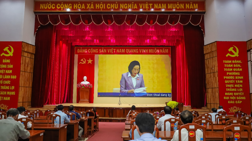 Hội nghị được trực tuyến từ điểm cầu chính tại Phòng họp Tân Trào, Nhà Quốc hội đến 34 điểm cầu cấp tỉnh, 3321 điểm cầu cấp xã.