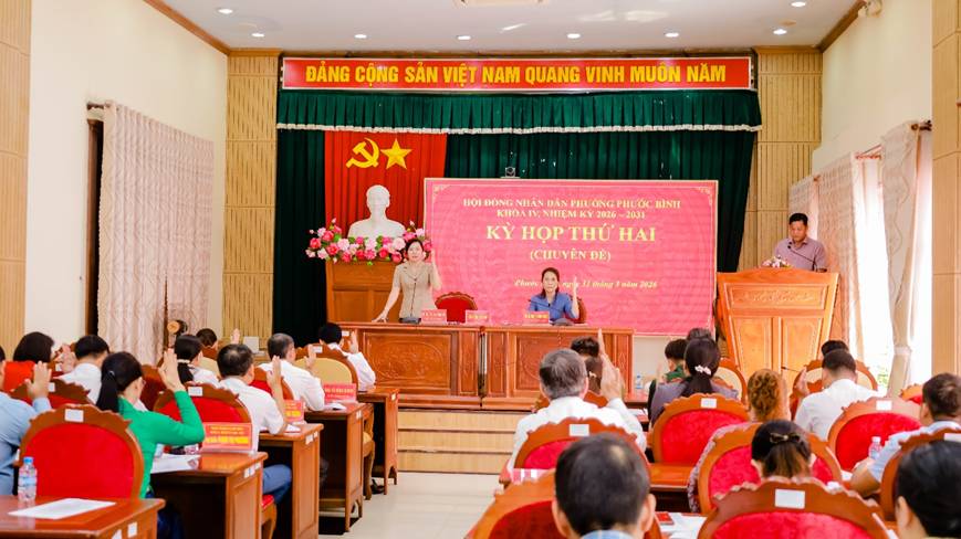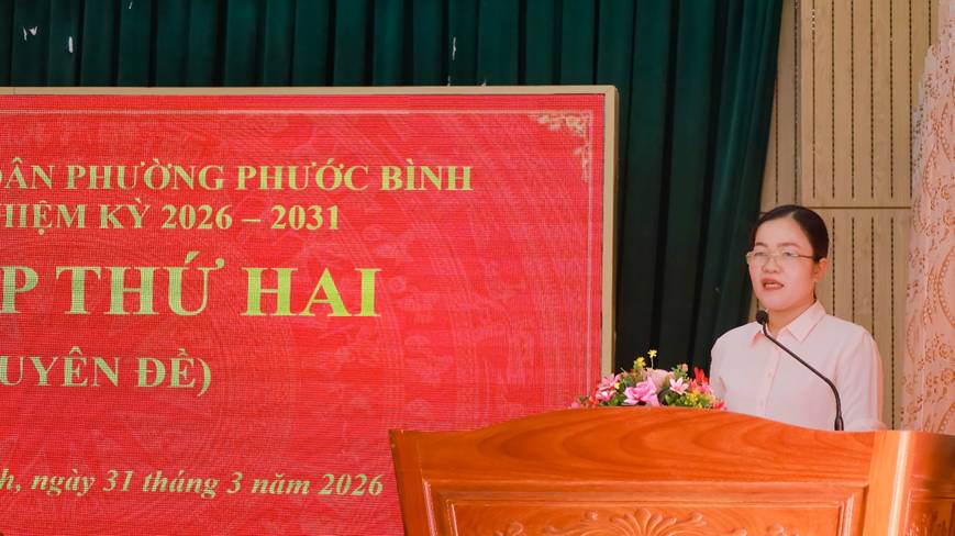 Sáng ngày 31/3/2026, Thường trực HĐND phường Phước Bình gồm các đồng chí: Huỳnh Thị Thùy Trang - Tỉnh ủy viên, Bí thư Đảng ủy, Chủ tịch HĐND phường; Nguyễn Thị Hồng Quế - UVBTV Đảng ủy, Phó Chủ tịch HĐND phường chủ trì Kỳ họp thứ 2 (Chuyên đề) HĐND phường Phước Bình khóa IV, nhiệm kỳ 2026 – 2031. Dự kỳ họp có đồng chí Nguyễn Văn Dũng - Phó Bí thư Đảng ủy, Chủ tịch UBND phường Phước Bình; các đồng chí lãnh đạo Đảng ủy, HĐND, UBND, UBMTTQVN phường; lãnh đạo các cơ quan chuyên môn phường cùng 21/23 đại biểu HĐND phường.