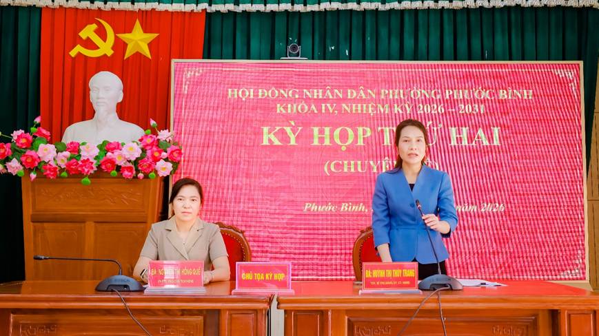 Các đồng chí: Huỳnh Thị Thùy Trang - Tỉnh ủy viên, Bí thư Đảng ủy, Chủ tịch HĐND phường; Nguyễn Thị Hồng Quế - UVBTV Đảng ủy, Phó Chủ tịch HĐND phường chủ trì Kỳ họp thứ 2 (Chuyên đề) HĐND phường Phước Bình khóa IV, nhiệm kỳ 2026 – 2031