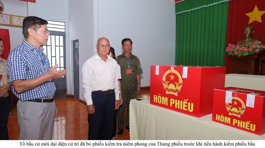 Tổ bầu cử mời đại diện cử tri đã bỏ phiếu kiểm tra niêm phong Thùng phiếu, sau đó tiến hành kiểm phiếu và thực hiện các quy trình tiếp theo. Ngoài ra, buổi diễn tập cũng đã tiến hành diễn tập một số tình huống và giải quyết tình huống có thể phát sinh trong quá trình bầu cử…