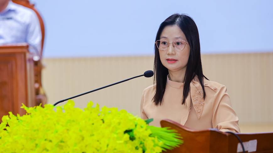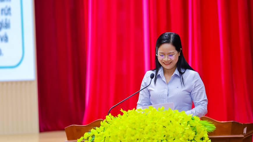 Bà Lê Thị Giang Thảo, Phó Ban công tác công đoàn Liên đoàn Lao động tỉnh Đồng Nai trình bày chương trình hành động