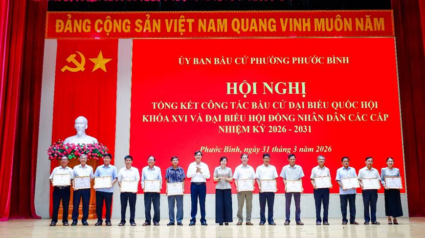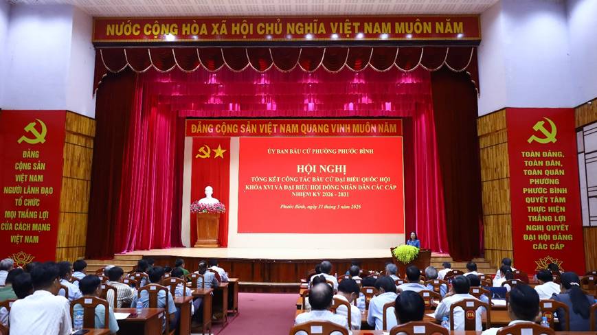 Chiều ngày 31/3/2026, Ủy ban Bầu cử phường Phước Bình tổ chức Hội nghị tổng kết công tác bầu cử đại biểu Quốc hội khóa XVI và đại biểu Hội đồng nhân dân các cấp nhiệm kỳ 2026 – 2031. Dự hội nghị có Đồng chí Huỳnh Thị Thùy Trang, Tỉnh ủy viên, Bí thư Đảng ủy, Chủ tịch HĐND, Trưởng Ban Chỉ đạo bầu cử phường; đồng chí Nguyễn Văn Dũng, Phó Bí thư Đảng ủy, Chủ tịch UBND, Chủ tịch Ủy ban bầu cử phường; cùng tham dự của các đồng chí trong Ban Chỉ đạo bầu cử, Ủy ban bầu cử; Thường trực Đảng ủy, HĐND, UBND, UBMTTQVN phường; Bí thư, Phó Bí thư Chi bộ, Trưởng khu, Trưởng ban Công tác mặt trận, các đoàn thể các khu phố trên địa bàn phường.