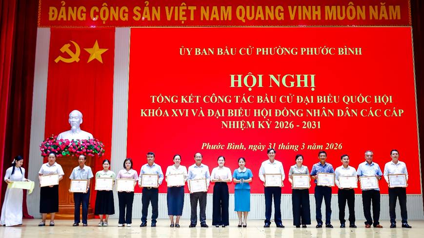 Khen thưởng các tập thể, cá nhân đạt thành tích cao trong công tác bầu cử đại biểu Quốc hội khóa XVI và đại biểu HĐND các cấp nhiệm kỳ 2026 – 2031 trên địa bàn phường Phước Bình