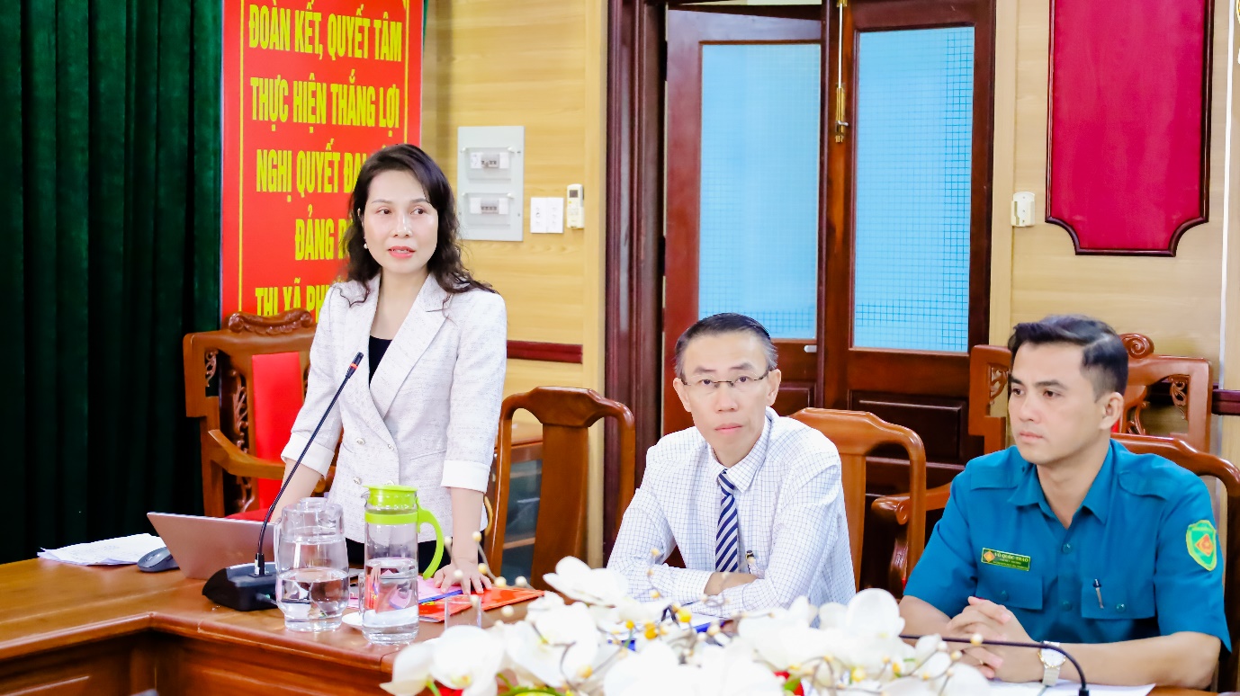 Đồng chí Huỳnh Thị Thùy Trang – Tỉnh ủy viên, Bí thư Đảng ủy phường Phước Bình phát biểu tại hội nghị
