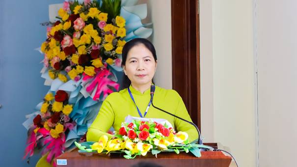 Đồng chí Huỳnh Thị Thùy Trang - Tỉnh ủy viên, Bí thư Đảng ủy phường, Bí thư Chi bộ Quân sự phường phát biểu khai mạc Đại hội