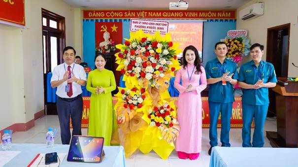 Đồng chí Phạm Thị Anh Thư – Phó Bí thư Thường trực Đảng ủy, Chủ tịch HĐND phường Phước Bình tặng lẵng hoa chúc mừng Đại hội
