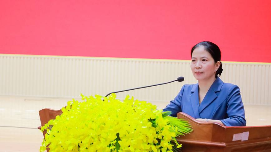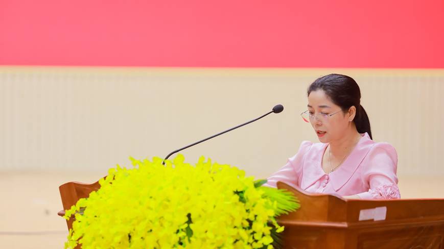 Đồng chí Phạm Thị Anh Thư – Phó Bí thư Thường trực Đảng ủy, Chủ tịch HĐND phường Phước Bình phát biểu tại hội nghị