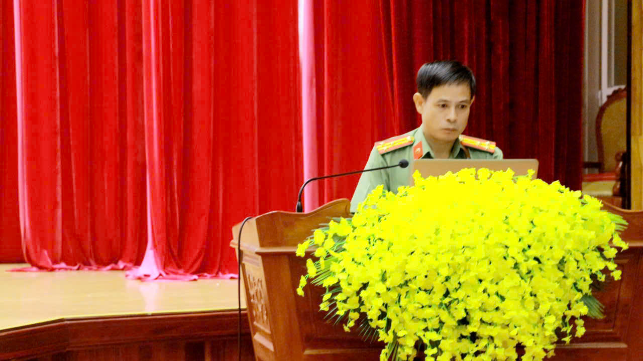 Thượng tá Nguyễn Văn Huy – Phó trưởng Phòng An ninh chính trị nội bộ, Công an tỉnh Đồng Nai triển khai tại Hội nghị.