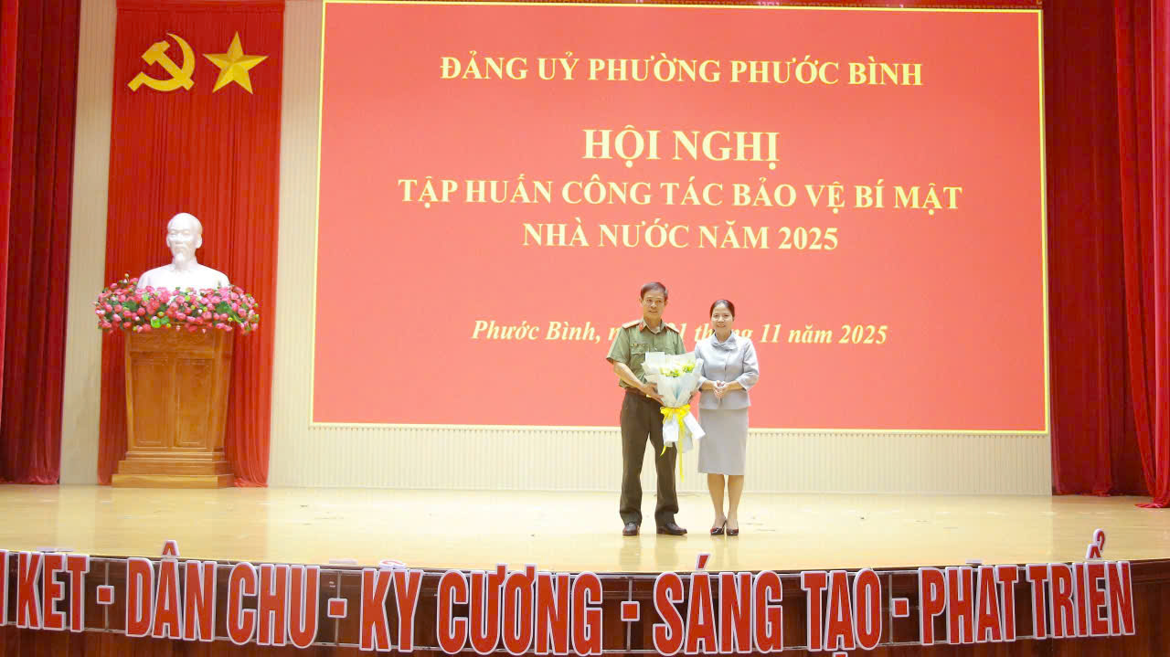 Sáng ngày 21/11, Đảng uỷ phường Phước Bình tổ chức Hội nghị tập huấn công tác bảo vệ bí mật Nhà nước năm 2025, đồng chí Phạm Thị Anh Thư - Phó Bí thư Thường trực Đảng ủy, Chủ tịch HĐND phường Phước Bình chủ trì Hội nghị. Tham dự Hội nghị có đồng chí Nguyễn Thị Hồng Quế - UVBTV Đảng uỷ, Phó Chủ tịch HĐND phường; các đồng chí lãnh đạo, cán bộ, công chức thuộc Đảng ủy, HĐND, UBND, UBMTTQVN phường; Lực lượng vũ trang phường; Bí thư các Chi, đảng bộ trực thuộc đảng ủy phường; cán bộ, đảng viên được phân công phụ trách lưu trữ văn bản của Đảng, Nhà nước. ..