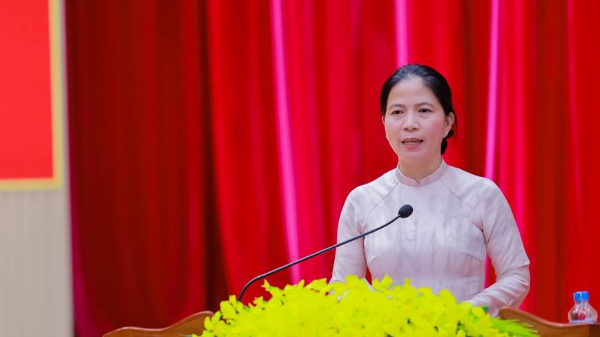 Bà Phạm Thị Anh Thư – Phó Bí thư Thường trực, Chủ tịch HĐND phường phát biểu tại hội nghị