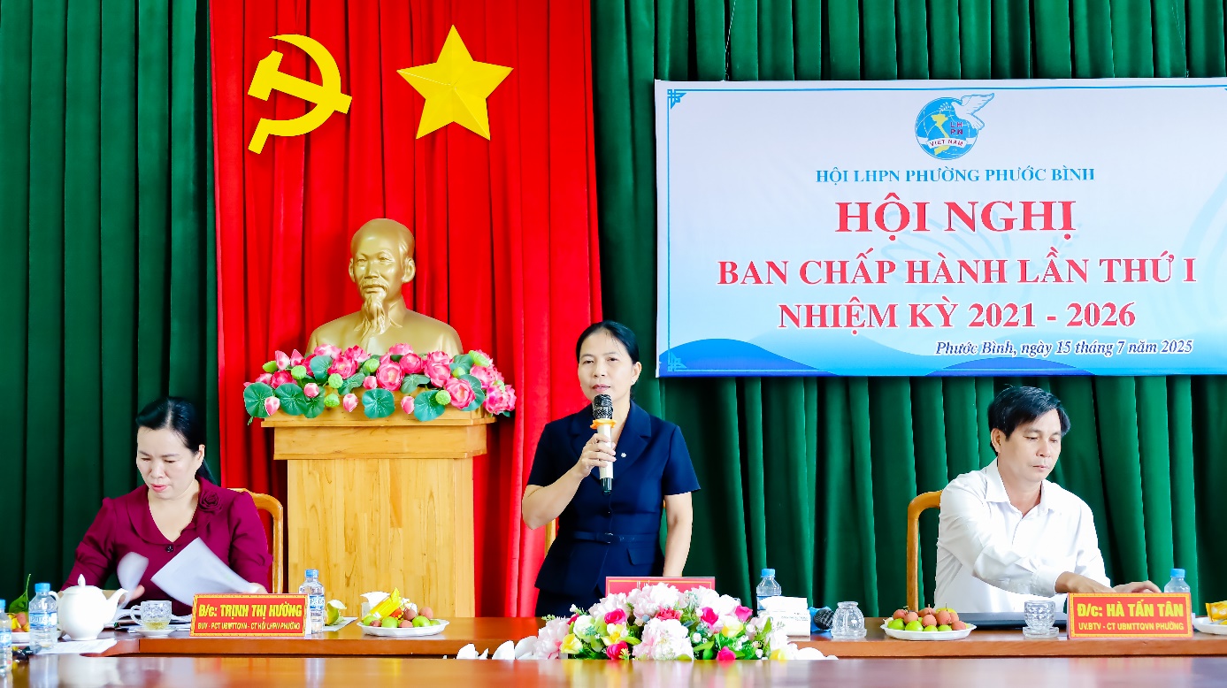 Tại hội nghị đã thông qua Quyết định về việc thành lập Hội LHPN phường Phước Bình và các Quyết định chỉ định Ban Chấp hành, Ban Thường vụ Hội LHPN phường Phước Bình. Đồng chí Trịnh Thị Hường được chỉ định giữ chức vụ Chủ tịch Hội LHPN phường nhiệm kỳ 2021-2026; thông qua kế hoạch hoạt động Hội 6 tháng cuối năm 2025 với một số nhiệm vụ trọng tâm như tuyên truyền các phong trào thi đua lập thành tích chào mừng Đại hội Đảng bộ các cấp nhiệm kỳ 2025-2030; triển khai hiệu quả các phong trào “Xây dựng người phụ nữ Việt Nam thời đại mới” gắn với các phong trào do Hội LHPN tỉnh Đồng Nai phát động; tiếp tục phát huy các cuộc vận động “Xây dựng gia đình 5 không 3 sạch”, “5 có 3 sạch”, các trương trình “Mẹ đỡ đầu”, “Đồng hành cùng phụ nữ biên cương”, “Triệu phần quà san sẻ yêu thương”.