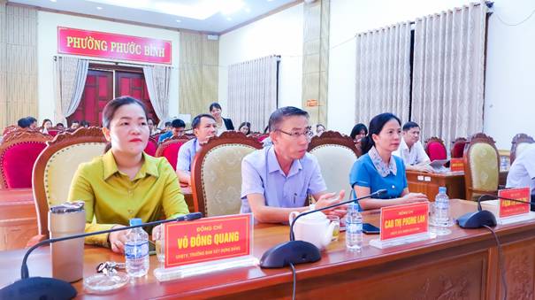 Dự hội nghị tại phường Phước Bình có các đồng chí: Phạm Thị Anh Thư - Phó Bí thư Thường trực Đảng ủy, Chủ tịch HĐND phường; Nguyễn Văn Dũng – Phó Bí thư Đảng ủy, Chủ tịch UBND phường Phước Bình. Các đồng chí UV.BCH Đảng bộ; Trưởng, phó các cơ quan, đơn vị; Bí thư các chi, đảng bộ trực thuộc Đảng ủy phường.