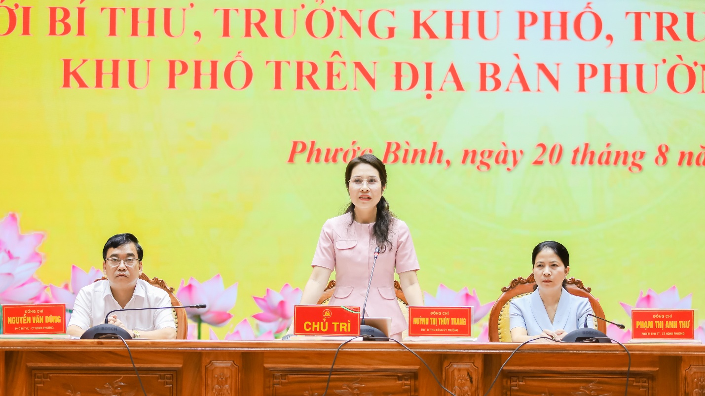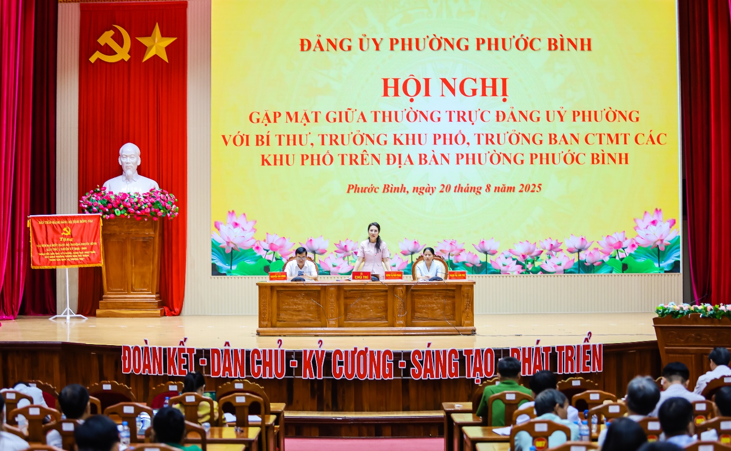 Chiều ngày 20/8, Đảng ủy phường Phước Bình, tỉnh Đồng Nai đã tổ chức Hội nghị gặp mặt giữa Thường trực Đảng ủy phường với Bí thư, Trưởng khu phố, Trưởng Ban Công tác Mặt trận các khu phố trên địa bàn phường. Các đồng chí: Huỳnh Thị Thùy Trang – Tỉnh ủy viên, Bí thư Đảng ủy; Phạm Thị Anh Thư – Phó Bí thư Thường trực Đảng ủy, Chủ tịch HĐND phường; Nguyễn Văn Dũng – Phó Bí thư Đảng ủy, Chủ tịch UBND phường đồng chủ trì hội nghị.