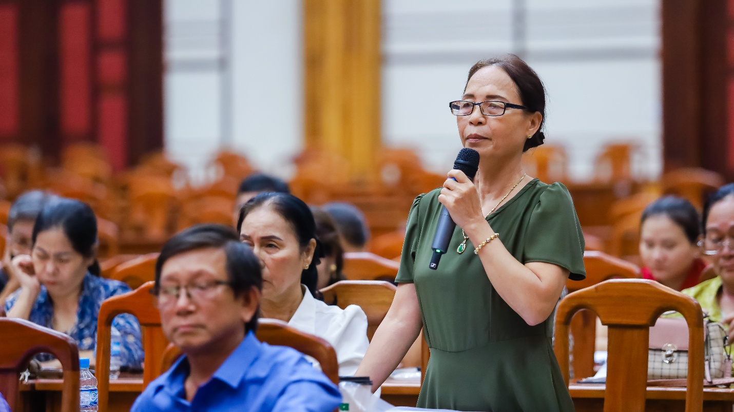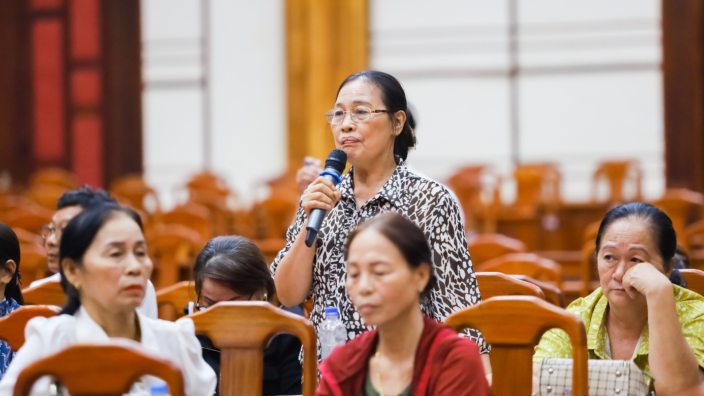 Tại hội nghị, Bí thư, Trưởng khu phố, Trưởng Ban Công tác Mặt trận các khu phố trên địa bàn phường đã trao đổi, đóng góp 11 ý kiến với lãnh đạo địa phương như: người dân gặp một số khó khăn trong thực hiện các TTHC khi thực hiện chính quyền địa phương 2 cấp; cấp đổi sổ chứng nhận quyền sử dụng đất; phụ cấp cho cán bộ ở khu phố, công tác chuẩn bị đại hội Ban công tác MT; thiếu cơ sở vật chất để thực hiện các nhiệm vụ tại khu phố; đa số đảng viên ở khu phố đều đã lớn tuổi, khó khăn trong thao tác máy tính; học sinh học trái tuyến do sắp xếp đơn vị hành chính; tăng cường công tác vệ sinh môi trường, đèn đường chiếu sáng; an ninh trật tự….