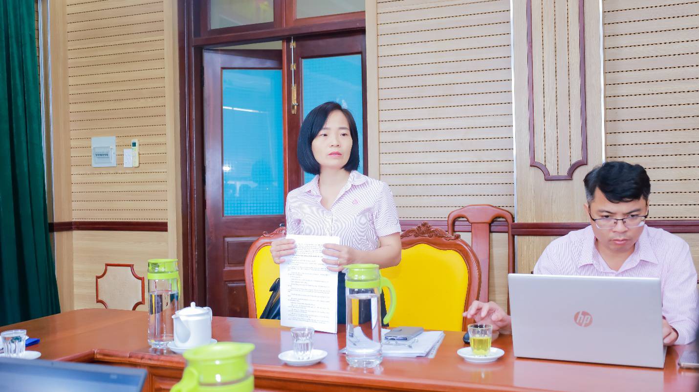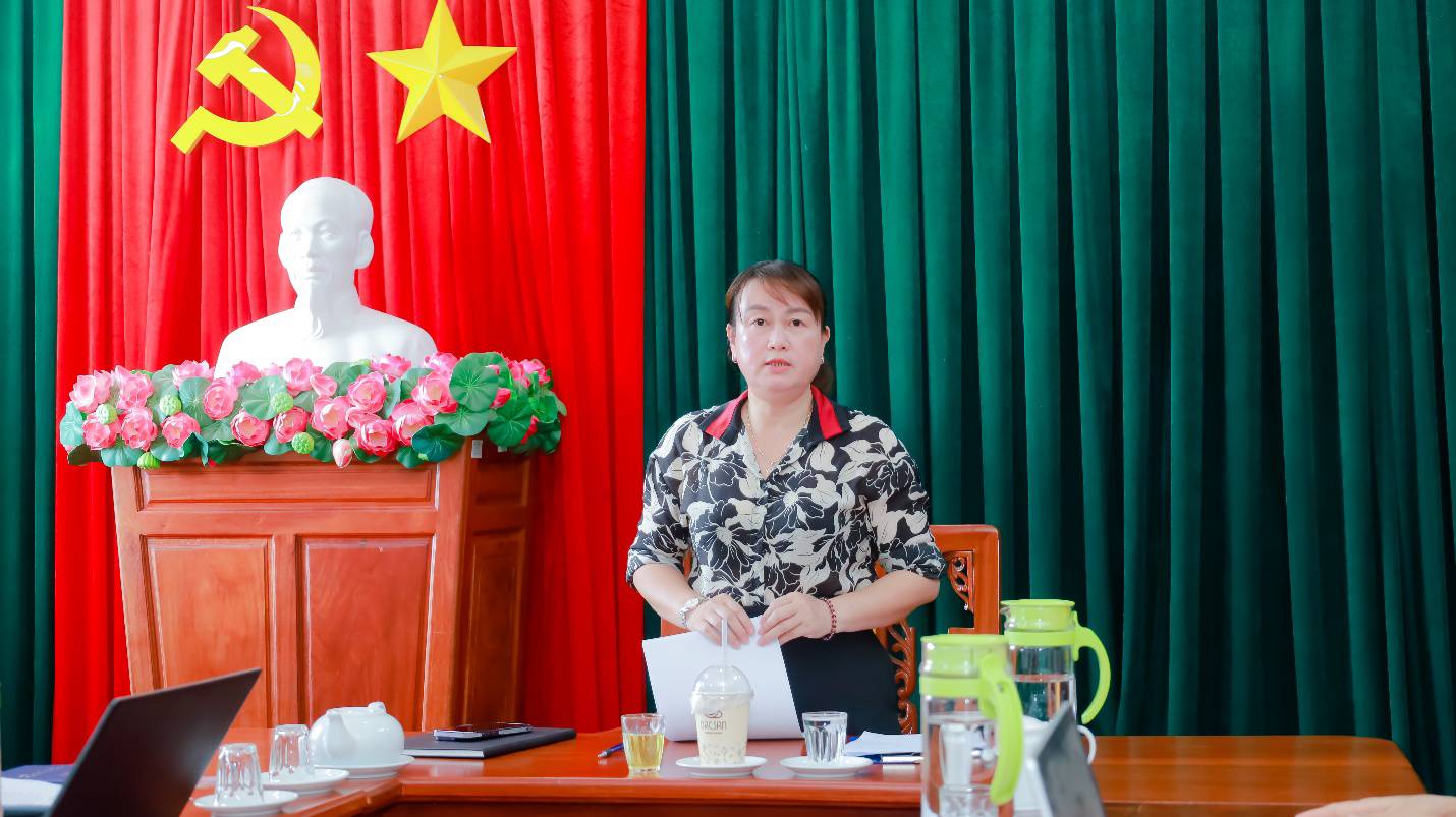Đồng chí Nguyễn Thị Hương Giang – Giám đốc Phòng giao dịch NHCSXH Phước Long phát biểu tại buổi làm việc