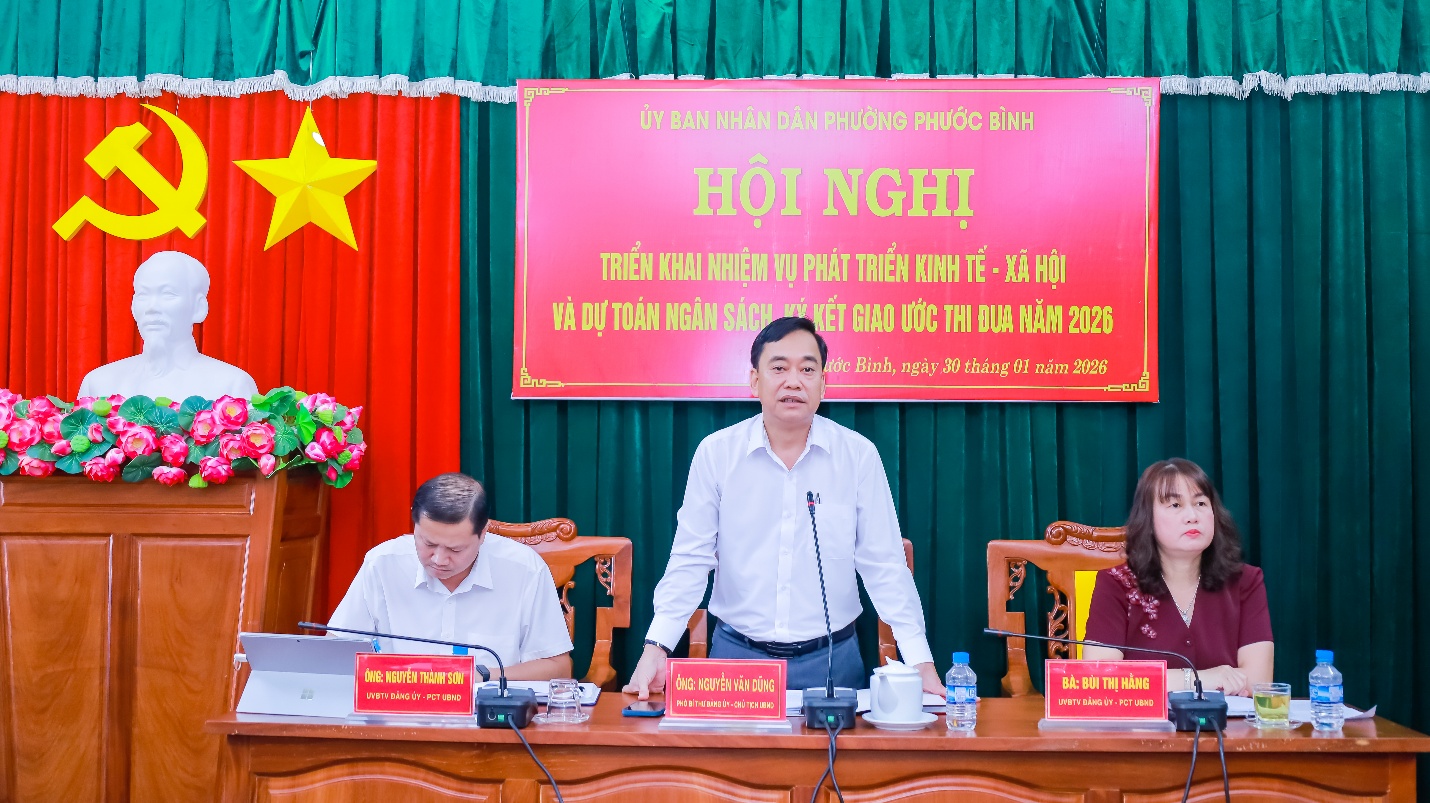 Chủ tịch UBND phường Phước Bình Nguyễn Văn Dũng giao chỉ tiêu phát triển KT-XH năm 2026 cho các cơ quan, đơn vị