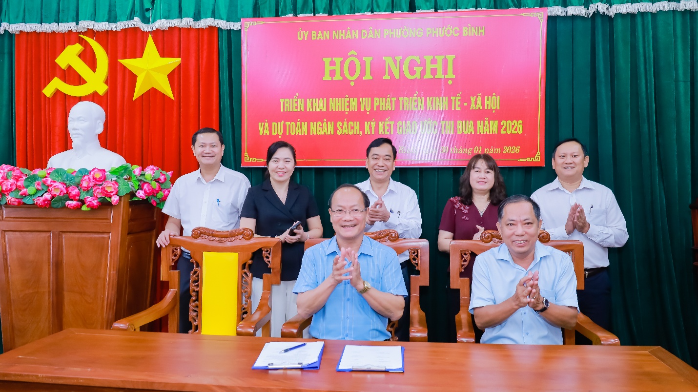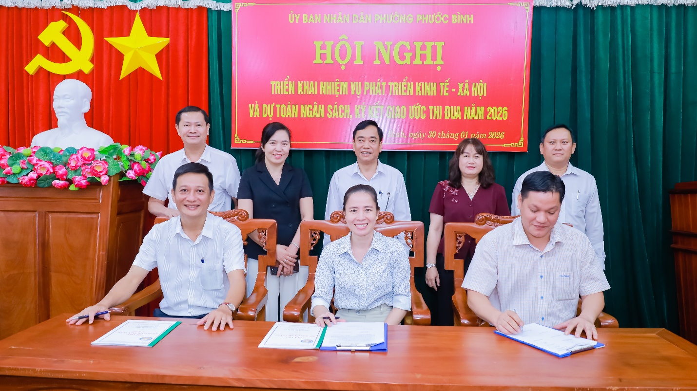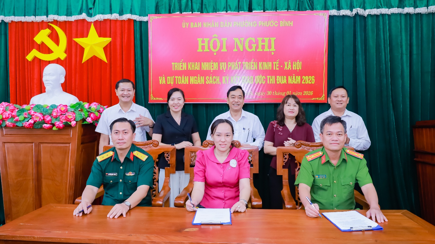Hội nghị tổ chức ký cam kết thực hiện Phong trào thi đua phát triển KT-XH, QPAN, nâng cao chỉ số cải cách hành chính phường Phước Bình năm 2026.